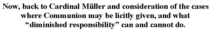 But Cardinal Müller says nothing about “mitigating factors” being what enables a divorced and remarried couple unrepentantly committing actual adultery to receive Communion. He says the complete opposite.