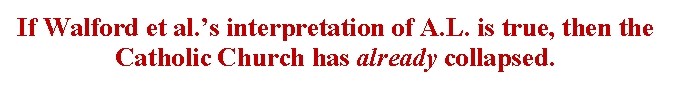 Walford himself does not deny the contradiction. He has already openly repudiated the right-hand column above, calling it “unrealistic.” And this is the basic approach now taken by all promoters of the heretical interpretation — namely, that what was once Magisterially taught can now be abrogated because it is “unrealistic.”