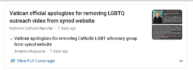 The Vatican bureaucracy’s shenanigans surrounding this “Synod on Synodality” are already turning it into a mockery of infallible Catholic teaching. For example, after briefly removing a link (from the Synod’s website) to a heretical Catholic group, New Ways Ministry, the Vatican quickly put it back up with a breathless apology to those offended: