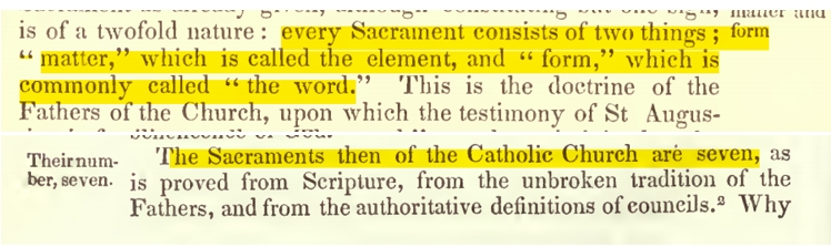 The Catechism goes on to insist “there are neither more nor less [than 7 Sacraments]…” To claim there are any more, or fewer, than precisely 7 Sacraments would be heresy. To contradict either the “matter” or the “form” of any Sacrament would be heresy.
