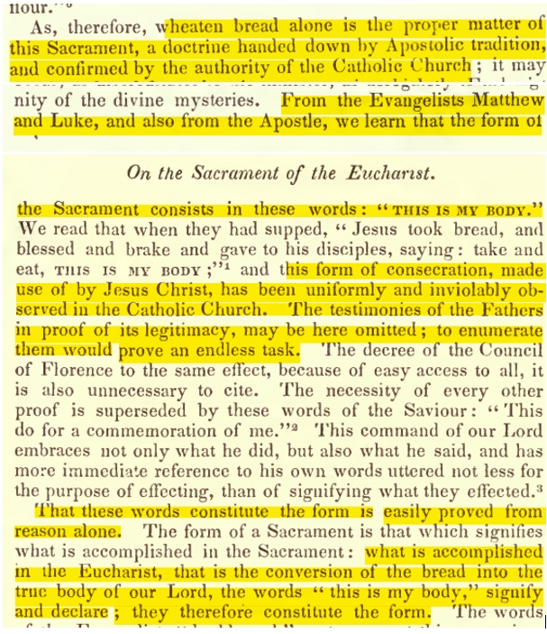 Now, on to the subject of the present post. A number of readers reached out to me requesting clarification, regarding my last post’s assertion, that if the words of consecration were changed to “this is Christ’s body,” that would render the Consecration (and thus the Mass and the Eucharist) invalid in such cases.