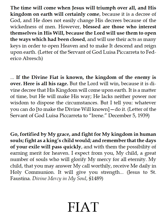 Our Mission, however, is not merely to wait for that moment, but to hasten it and to participate in the Triumph it will bring, therefore: