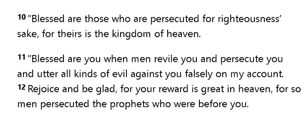 Behold Matthew 5:10-12 — the only one of the Beatitudes that is so very blessed that Christ both repeated it and explained it.