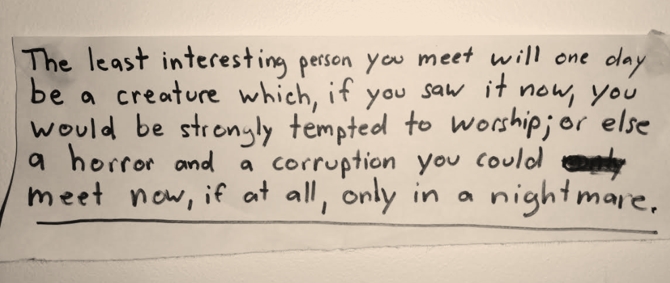 A C.S. Lewis quote I have hanging up next to my office door as an important daily reminder