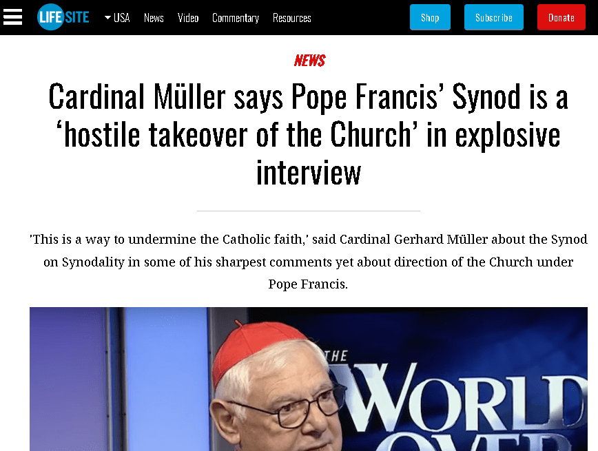 For now, I simply want to relay what they — some of the greatest Shepherds in the Church — are warning, regarding what is happening in this Synod. Great detail isn’t needed here, as most of my readers will have likely already seen this, but the prefect emeritus for the Congregation of the Doctrine of Faith, Cardinal Gerhard Muller, just gave about the most doctrinally apocalyptic warning one could imagine about this Synod: