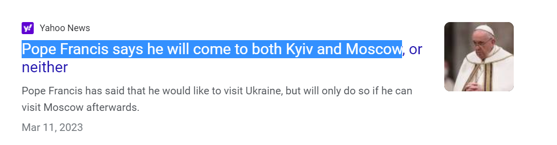 Many, however, have been doubting a Papal trip to Moscow simply because they did not believe that Francis could manage to make himself a significant player at all in any Zelensky/Putin negotiations. Well, today’s event just disputed that thesis. And regardless of how likely or unlikely the Pope’s initiatives are to have any major effect on the present war, there are no longer any grounds to doubt the possibility that the Pope could go to Moscow. Of course, he still might not. My point is merely that no grounds exist any longer to supposedly rule it out. If the ball that is now in motion keeps rolling, Francis will soon set foot in Moscow.
